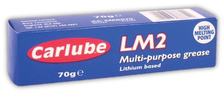 Carlube LM2, grease, 70g lithium smørefett som brukes til lagerfett og generell chassismøring. Har gode vannavstøtende egenskaper.
